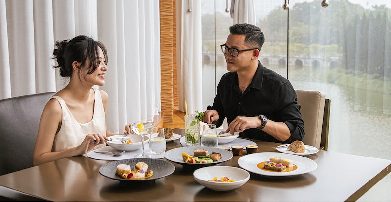 Khách sạn là điểm đến không thể bỏ qua với các tín đồ ẩm thực với 6 nhà hàng và quán bar phục vụ đa dạng các hương vị đặc sắc từ Pháp, Nhật Bản, Trung Quốc...